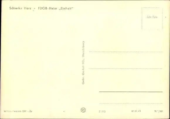 Ak Schierke Wernigerode am Harz, FDGB Heim Einheit