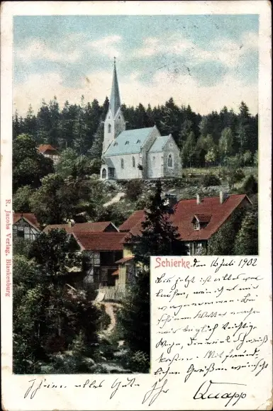 Ak Schierke Wernigerode am Harz, Ortsansicht, Kirche