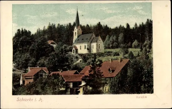 Ak Schierke Wernigerode am Harz, Teilansicht, Kirche