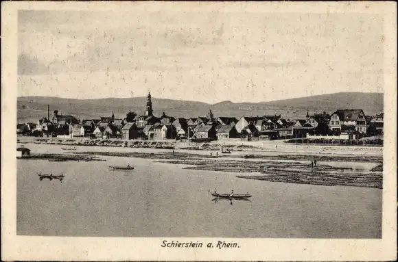Ak Schierstein Wiesbaden in Hessen, Totalansicht, Ruderboote