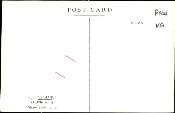 Ak Schiff S.S. Ceramic, Shaw Savill Line