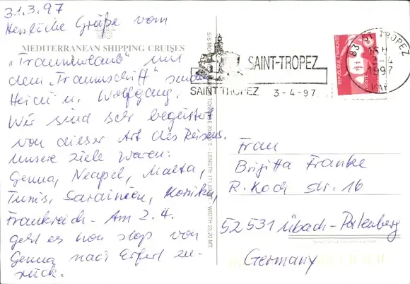 Zustand, siehe Scan, gelaufen, 1997 - ca 15 cm X 10 cm
