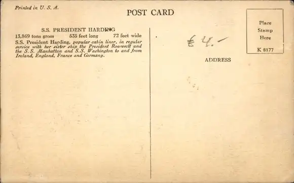 Ak Schiff SS President Harding, Frachtschiff