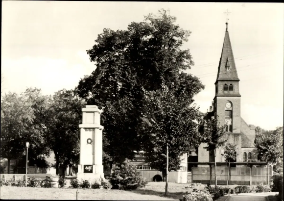 Ak Schildow in der Mark, An der Dorfaue, Kirche, Denkmal
