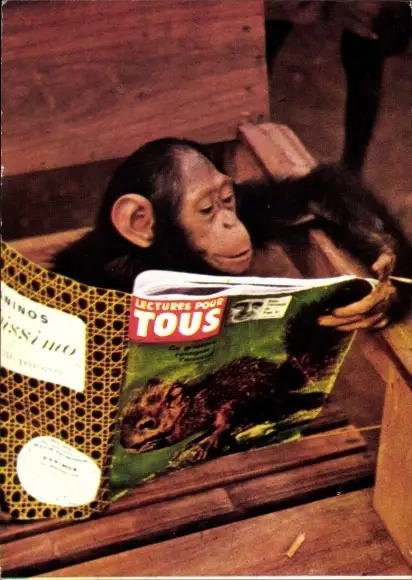 Ak Schimpanse eine Zeitung lesend