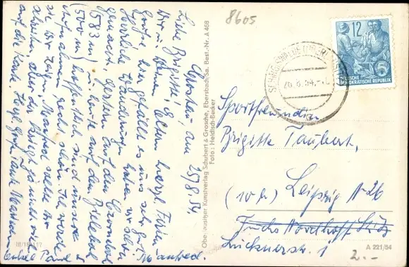 Zustand, siehe Scan, gelaufen, 1954 - ca 14 cm X 9 cm