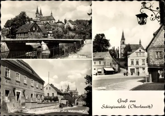 Ak Schirgiswalde in der Lausitz, An der Spree, Markt, HO-Gasthof Zur Weintraube