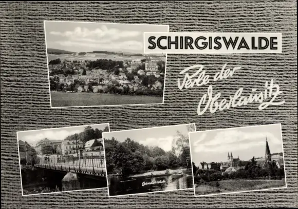 Ak Schirgiswalde in der Lausitz, Gondelteich, Ortsansicht