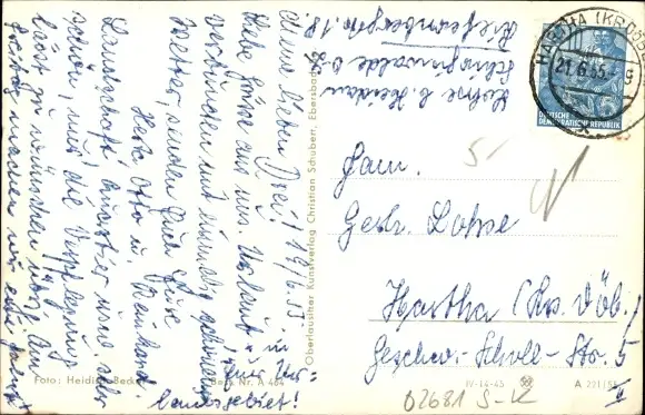 Zustand, siehe Scan, gelaufen, 1955 - ca 14 cm X 9 cm