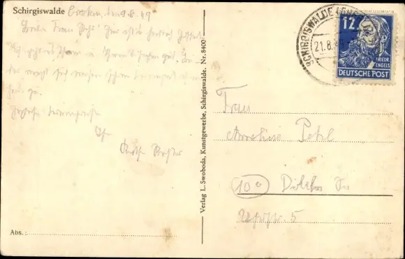 Zustand, siehe Scan, gelaufen, 1949 - ca 14 cm X 9 cm