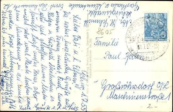 Zustand, siehe Scan, gelaufen, 1955 - ca 14 cm X 9 cm