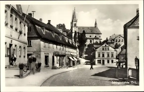 Ak Schirgiswalde in der Lausitz, Teilansicht, Kirchturm