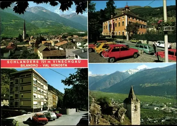 Ak Schlanders im Vintschgau Silandro Südtirol, Ortsansicht, St. Aegidius-Kirche, Ortsansicht
