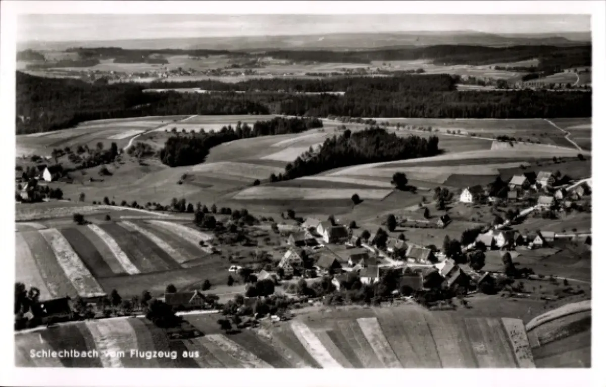 Ak Schlechtbach Rudersberg in Württemberg, Luftaufnahme von Felder, Häuser, Landschaft