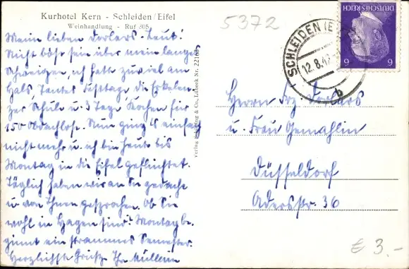 Zustand, siehe Scan, gelaufen, 1942 - ca 9 cm X 14 cm