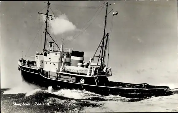 Ak Schleppboot Zeeland, Schlepper bei starkem Wellengang