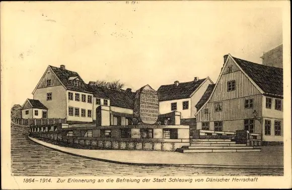 Ak Schleswig, Ortspartie mit Denkmal, Befreiung der Stadt von Dänen