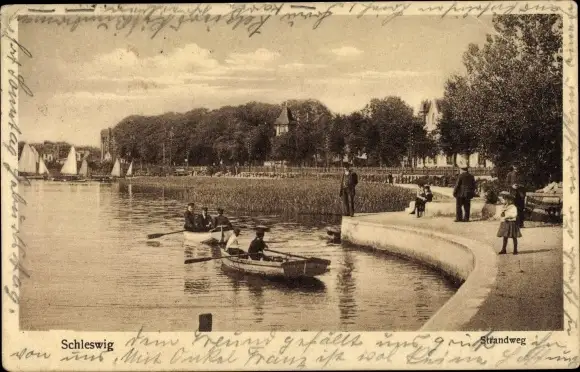 Ak Schleswig, Partie am Strandweg, Ruderboote