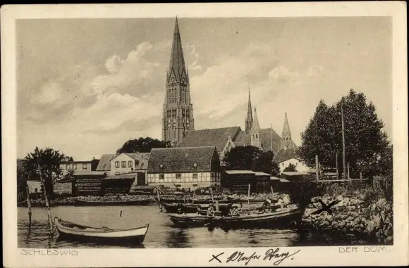 Ak Schleswig an der Schlei, Der Dom, Boote