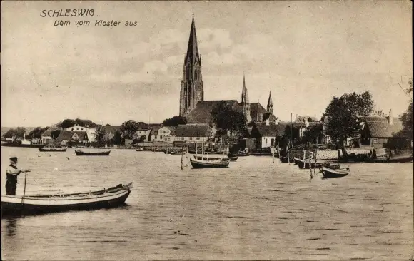 Ak Schleswig an der Schlei, Dom vom Kloster aus, Boote