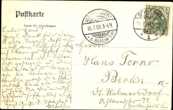 Zustand, siehe Scan, gelaufen, 1906 - ca 14 cm X 9 cm
