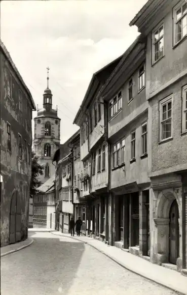 Ak Schleusingen in Thüringen, Straßenpartie, Glockenturm