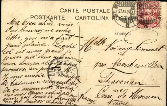 Zustand, siehe Scan, gelaufen, 1907 - ca 9 cm X 14 cm