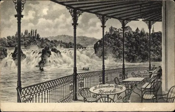 Ak Schlösschen Wörth Kanton Schaffhausen Schweiz, Rheinfall, Terrasse