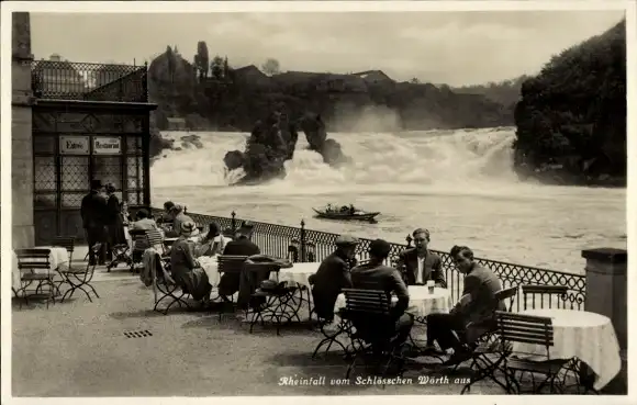 Ak Schlösschen Wörth Kanton Schaffhausen Schweiz, Rheinfall, Terrasse