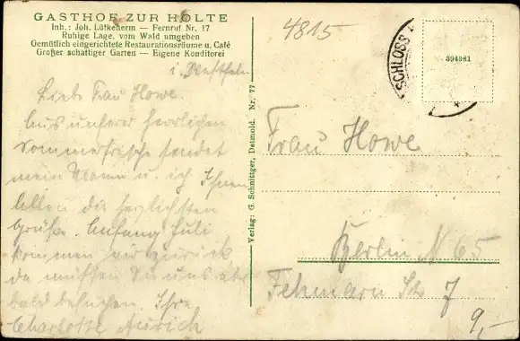 Ak Schloß Holte Stukenbrock in Westfalen, Gasthof zur Holte, Inh. Joh. Lütkeherm