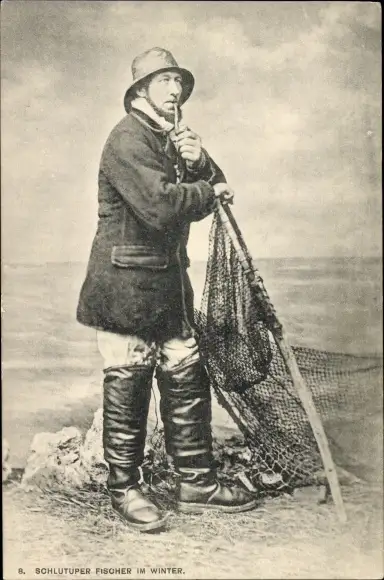 Ak Schlutup Hansestadt Lübeck, Schlutuper Fischer im Winter
