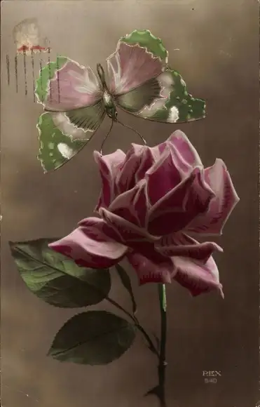 Ak Schmetterling, Blühende Rose