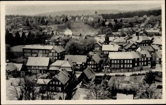 Ak Schmiedefeld am Rennsteig Thüringen, Blick über die Stadt, Winter