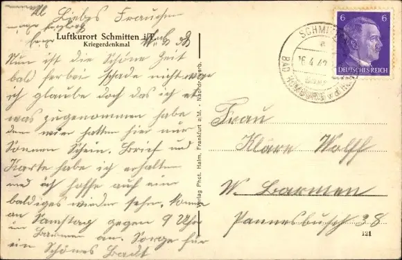 Zustand, siehe Scan, gelaufen, 1942 - ca 14 cm X 9 cm