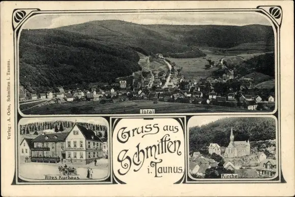 Ak Schmitten im Taunus Hessen, Totalansicht, Kirche, Kurhaus
