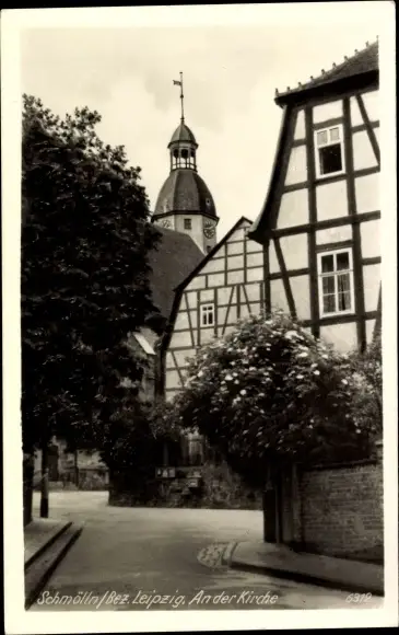 Ak Schmölln in Thüringen, An der Kirche, Fachwerkhäuser