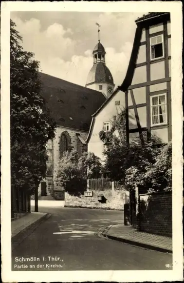 Ak Schmölln in Thüringen, Partie an der Kirche