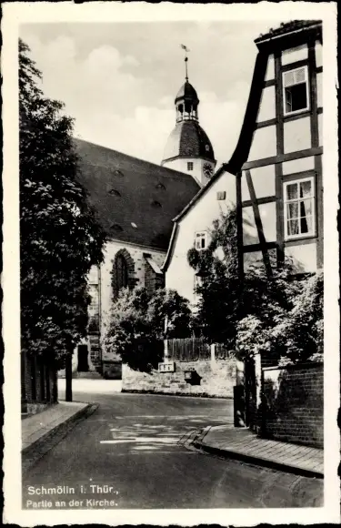 Ak Schmölln in Thüringen, Partie an der Kirche