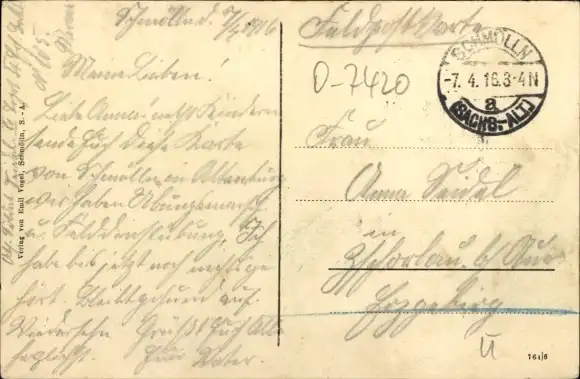 Zustand, siehe Scan, gelaufen, 1916 - ca 14 cm X 9 cm