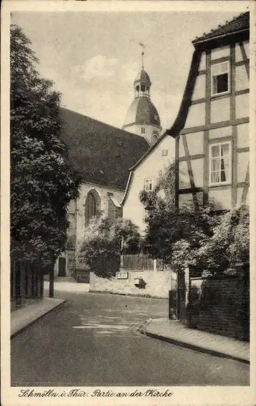 Ak Schmölln in Thüringen, an der Kirche, Fachwerkhaus