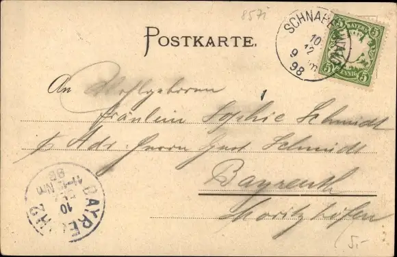 Zustand, siehe Scan, gelaufen, 1898 - ca 14 cm X 9 cm