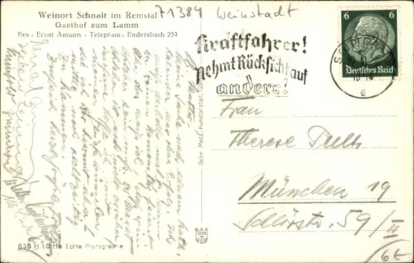 Ak Schnait Weinstadt in Württemberg, Teilansicht, Gasthof zum Lamm