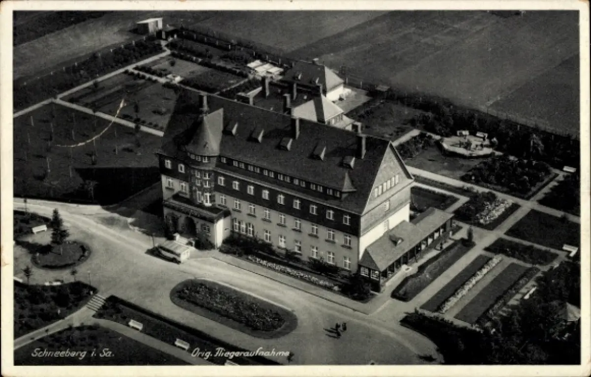 Ak Schneeberg in Sachsen , Fliegeraufnahme, Kurheim Schneeberg