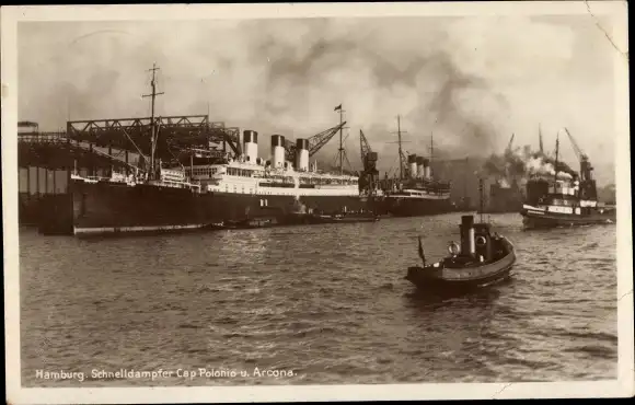 Ak Schnelldampfer Cap Polonio und Cap Arcona im Hamburger Hafen, HSDG