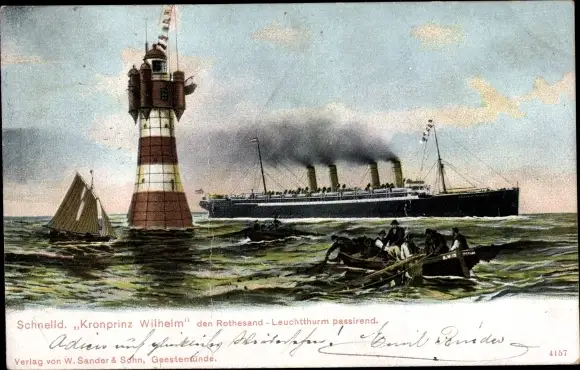 Ak Schnelldampfer Kronprinz Wilhelm, Norddeutscher Lloyd, Roter Sand Leuchtturm