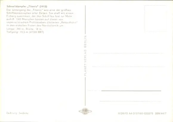 Ak Schnelldampfer Titanic, White Star Line
