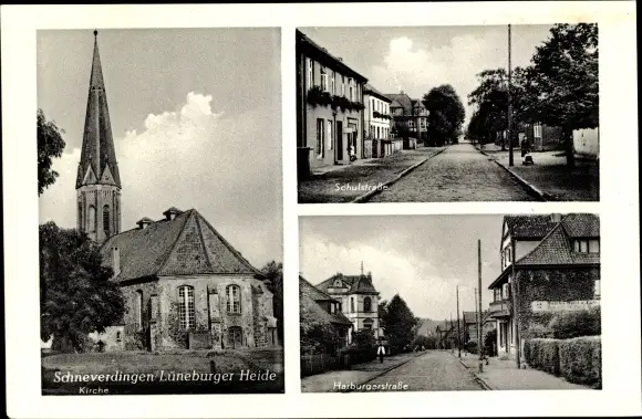 Ak Schneverdingen Lüneburger Heide, Kirche, Schulstraße, Harburgerstraße