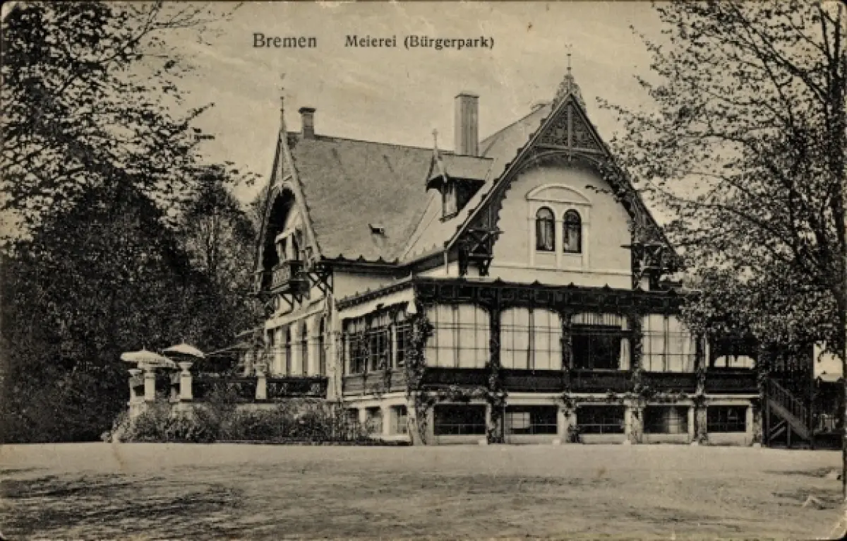 Ak Schnoor Bremen, Meierei im Bürgerpark, Architektur, Schwarz-Weiß-Foto