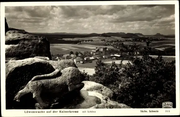 Ak Schöna Sächsische Schweiz, Löwenwache auf der Kaiserkrone