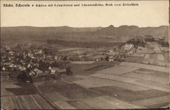 Ak Schöna Sächsische Schweiz, Sächs. Schweiz, Schöna, Kaiserkrone, Schrammsteine, Blick vom Zi...